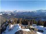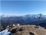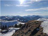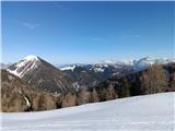 Auf Starhand bin ich von Kovk über Ukvama gestiegen, mit Skiern auf Forc. di Fontana Fredda, und nach Österreich, dann bin ich zur Waldhütte abgestiegen und hoch zur Gorischacher Alm, und weiter zum Gipfel. Vom Gipfel bin ich zur Dolinza Alm abgefahren, und über das Sattel Lom zurück nach Italien und auf der Straße zum Ausgangspunkt. schöner Wintertag.